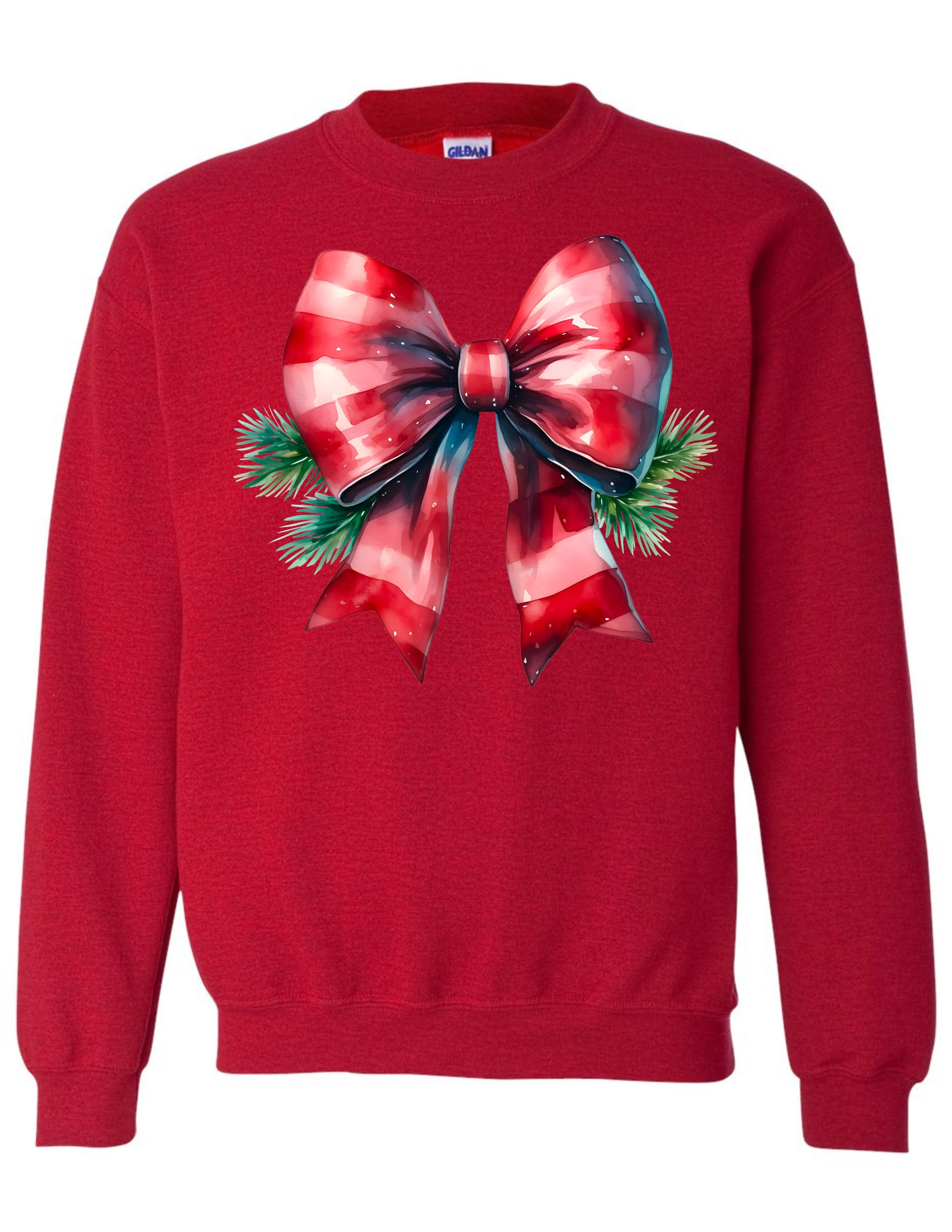 Simple, festive, and full of charm—our Classic Holiday Red Bow features a festive red holiday bow with greenery, this cozy sweatshirt brings timeless Christmas charm to your everyday look. Perfect for holiday parties, family gatherings, or simply staying warm and merry all season long.”