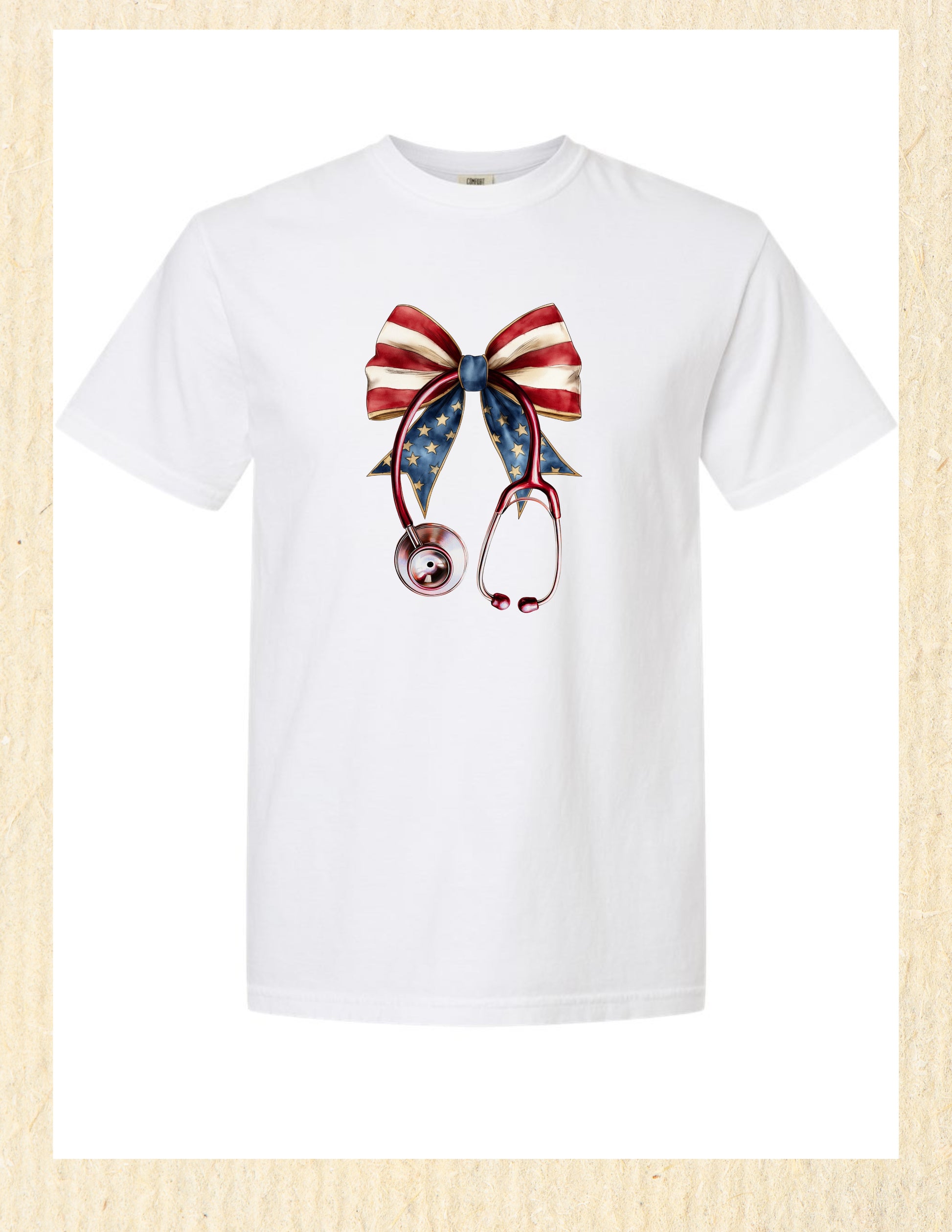 Show your love for both your patients and your country with our Red, White & Blue Stethoscope Bow T-Shirt — featuring a darling stethoscope design tied up in a red, white, and blue bow. Perfect for nurses, caregivers, and healthcare heroes who like their scrubs with a side of sparkle. Whether you're working a holiday shift or heading to a BBQ after scrubs, this shirt blends compassion and country like no other. A must-have for your Independence Day wardrobe!